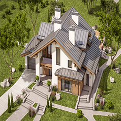 該項目位于歐洲,屋面全部采用奧美純進口彩石金屬瓦Romana鋪裝。 圖片聲明...