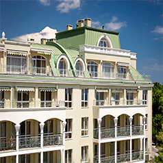 此為中東歐商務中心項目,此屋面系統采用的是新型建筑材料金屬復合瓦鋪設...