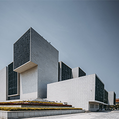 此為眉山展覽館項目,此屋面系統采用的是新型建筑材料金屬...
